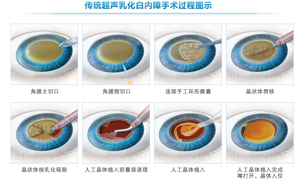 近年来,随着医学水平的进步,通过白内障超声乳化联合人工晶体植入术治疗白内障技术已十分成熟。手术均在高清显微镜下操作,具有切口小、损伤小、时间短、恢复快等优势。