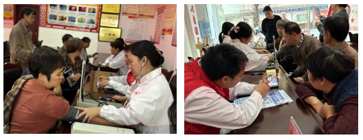 义诊现场,卒中中心的核心团队认真询问患者的既往病史,针对患者的用药情况提供个性化指导,并耐心回应群众提出的各种健康问题。同时,为现场群众免费测量血压、血糖,发放健康科普手册,详细介绍脑卒中的危险因素、预防方法、早期症状及应急处理等知识,让大家能更全面地了解脑卒中,提高自我防范意识。