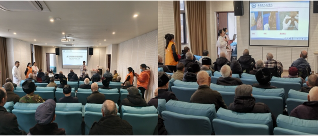 讲座结束后,医护团队针对养老中心工作人员和老人提出的问题一一进行解答,并发放预防压力性损伤健康教育资料,反复强调压力性损伤的预防理念和处理方法的重要性,并倡导大家合理膳食,适量运动,减少高血压、糖尿病等相关并发症的发生。