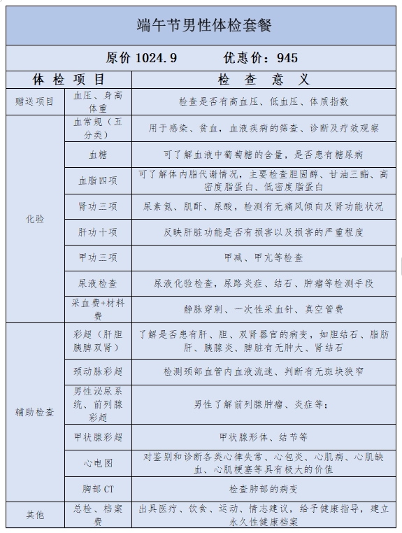 • 基础套餐:涵盖一般检查、常规化验及基础医技检查,适合健康状况良好的人群定期进行健康筛查,及时发现潜在健康隐患。