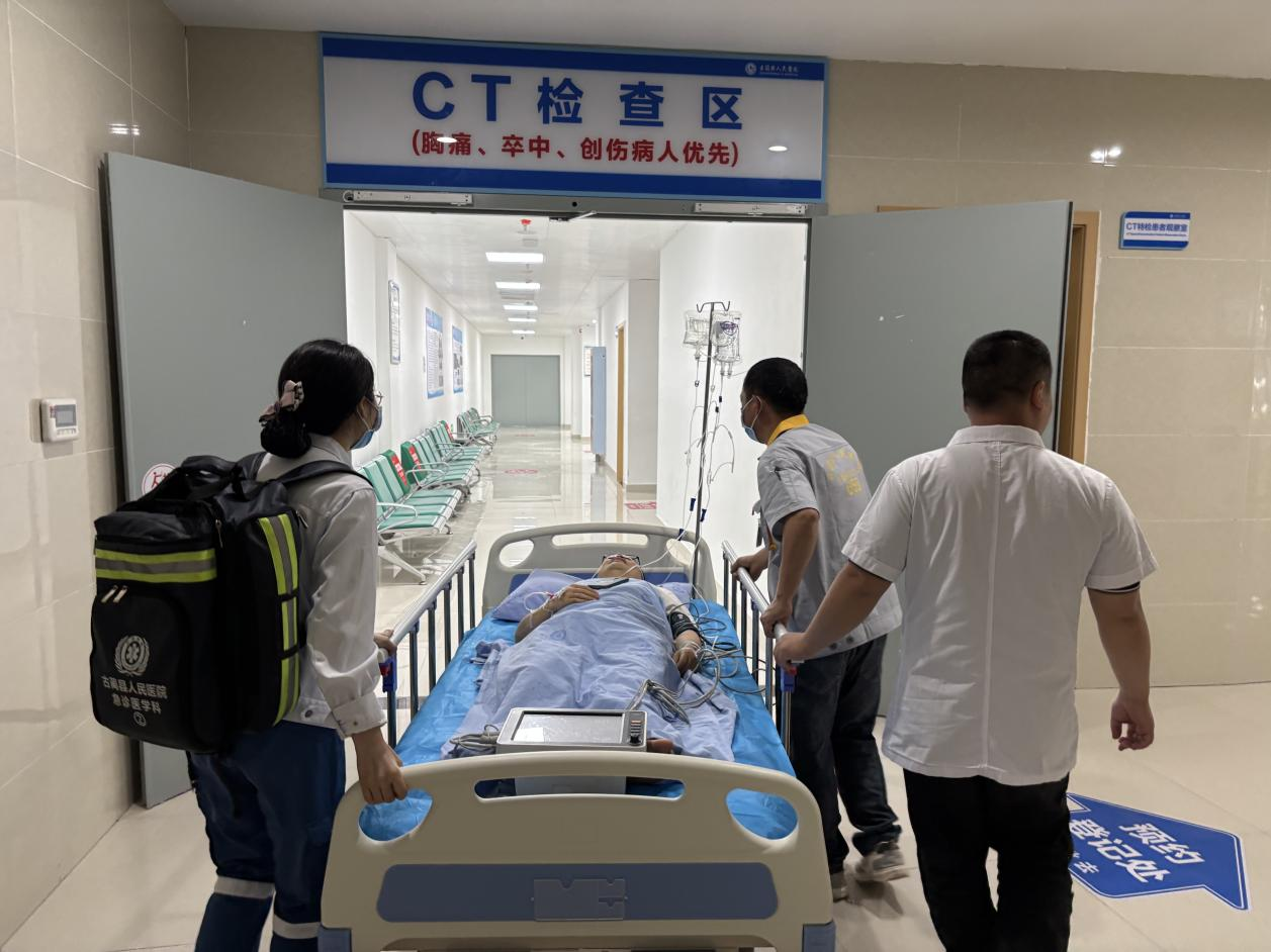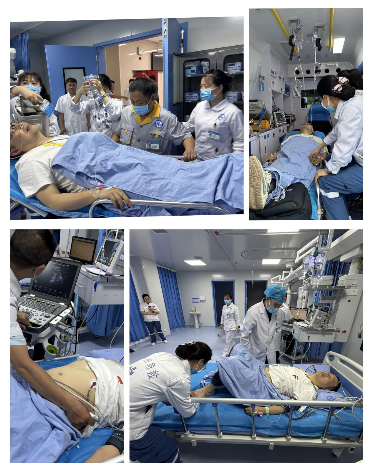 转运途中,急救小组与院内多学科团队联动,提前筹备抢救工作。以创伤性肝脾破裂致失血性休克的患者张大爷为例,其入院后,急诊医学科即刻启动床旁超声、CT检查,确诊为创伤性肝脾破裂与多发肋骨骨折。输血科紧急开展床旁输血,多学科迅速制定手术方案,顺利将患者送入手术室,为抢救赢得宝贵时间。