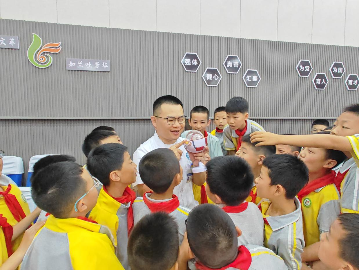 活动现场,眼科专家化身“知识传播者”,借助直观的眼球模型,将复杂的近视成因转化为孩子们易懂的生动比喻——“眼轴变长就像气球被过度吹大”,瞬间点燃了同学们的求知欲。在专家通俗易懂的讲解中,孩子们不仅理解了近视发展的科学原理,更深刻认识到保护视力的重要性。
