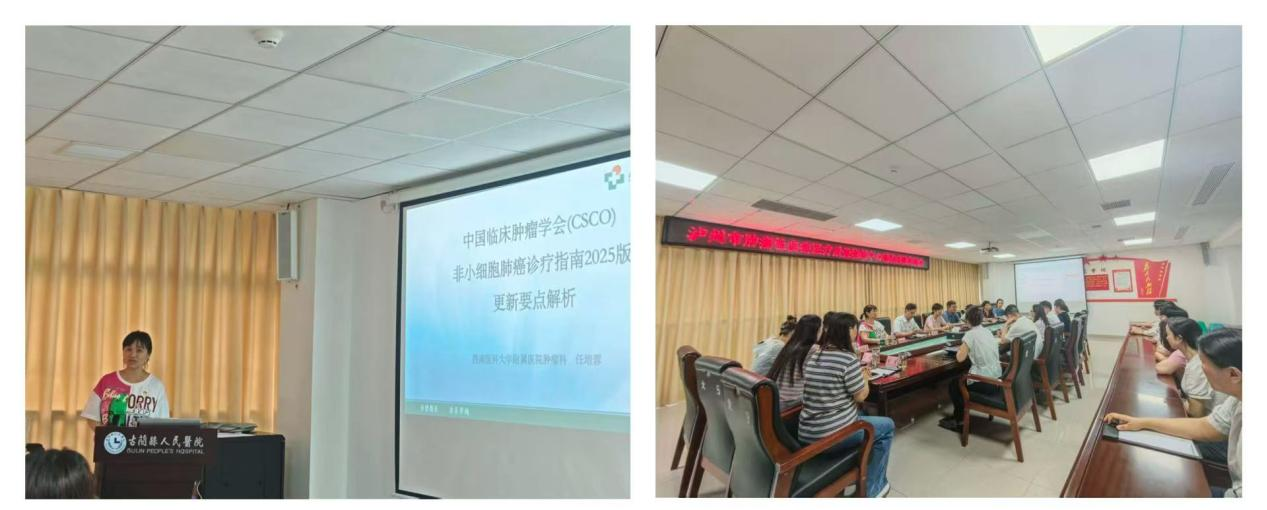 学术培训环节,市质控中心各位专家以临床需求为导向,分享实用经验。西南医科大学附属医院张建文教授在讲解《肝内胆管癌综合诊疗策略》中提出,整合放化疗、靶向及免疫治疗手段,建立“影像+肿瘤标志物”随访机制,为患者制定个体化治疗方案;任培蓉教授解读《2025中国临床肿瘤学会非小细胞肺癌指南》更新要点,涵盖优化早期围手术期治疗、扩大免疫治疗适用范围、细化晚期分子分型治疗策略等内容,为临床提供清晰指导。