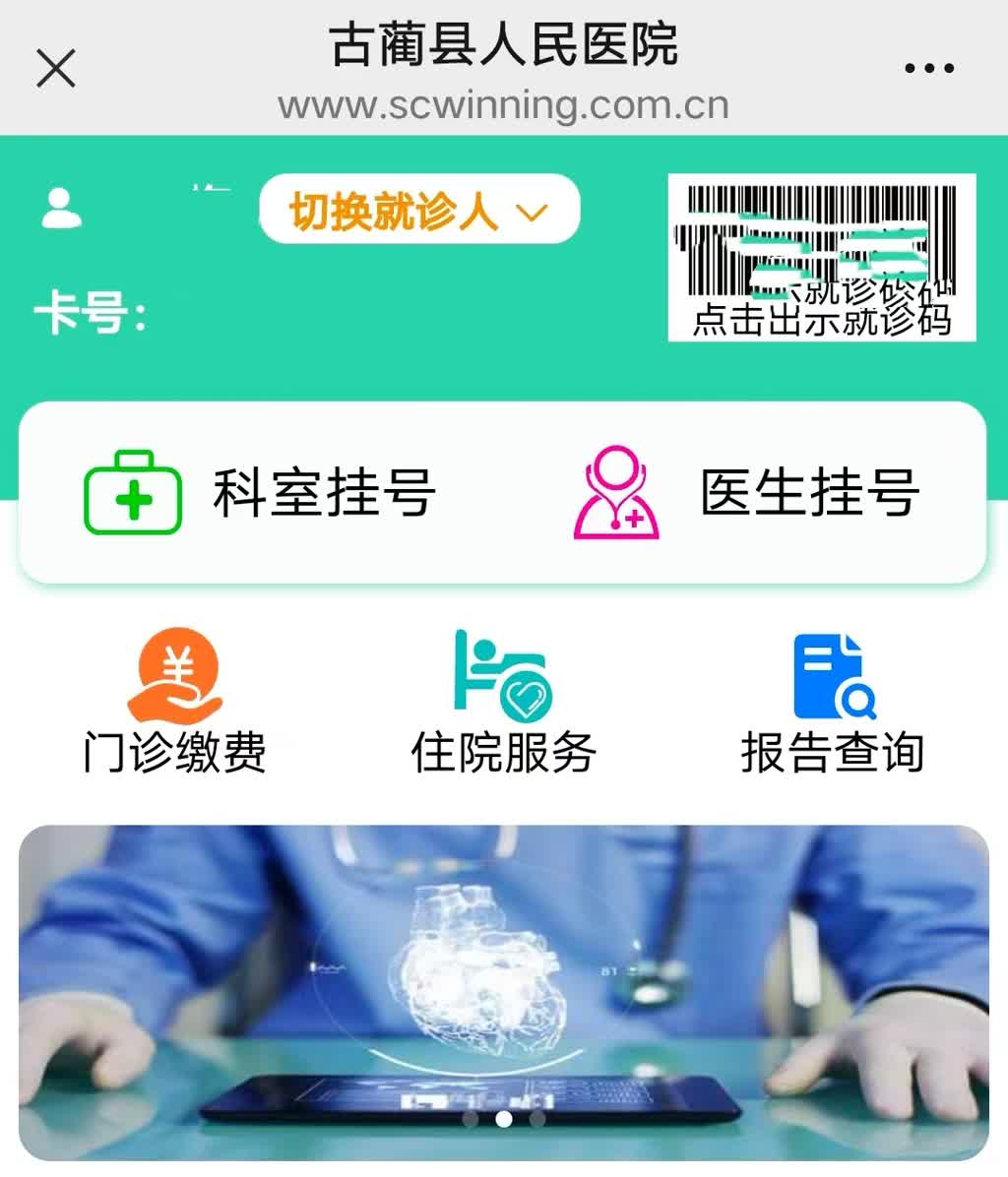 1.微信预约:古蔺县人民医院微信公众号→诊疗服务→科室挂号→甲状腺乳腺外科门诊