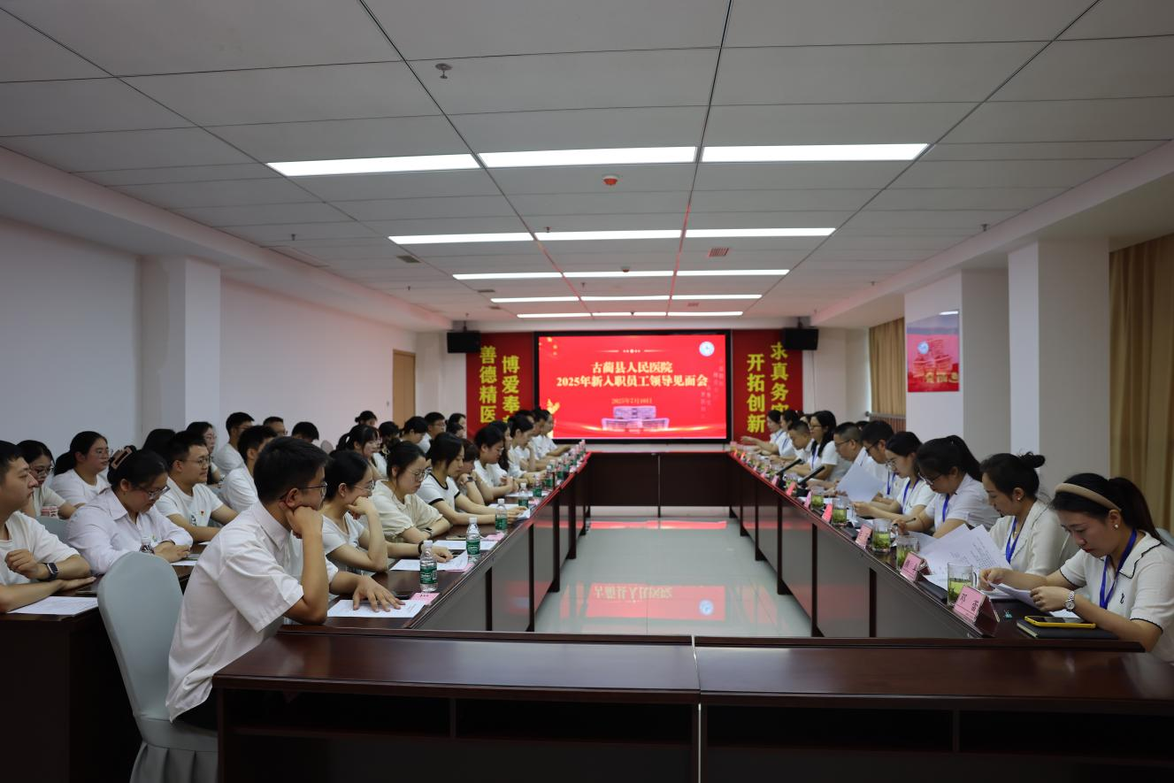 为助力新入职员工快速融入医院环境,强化职业使命感与归属感,7月10日,古蔺县人民医院召开2025年新员工岗前培训暨领导见面会。院领导班子成员、相关职能部门负责人与新员工齐聚一堂,共同开启职业新篇章。会议由医院党委副书记于渊主持。