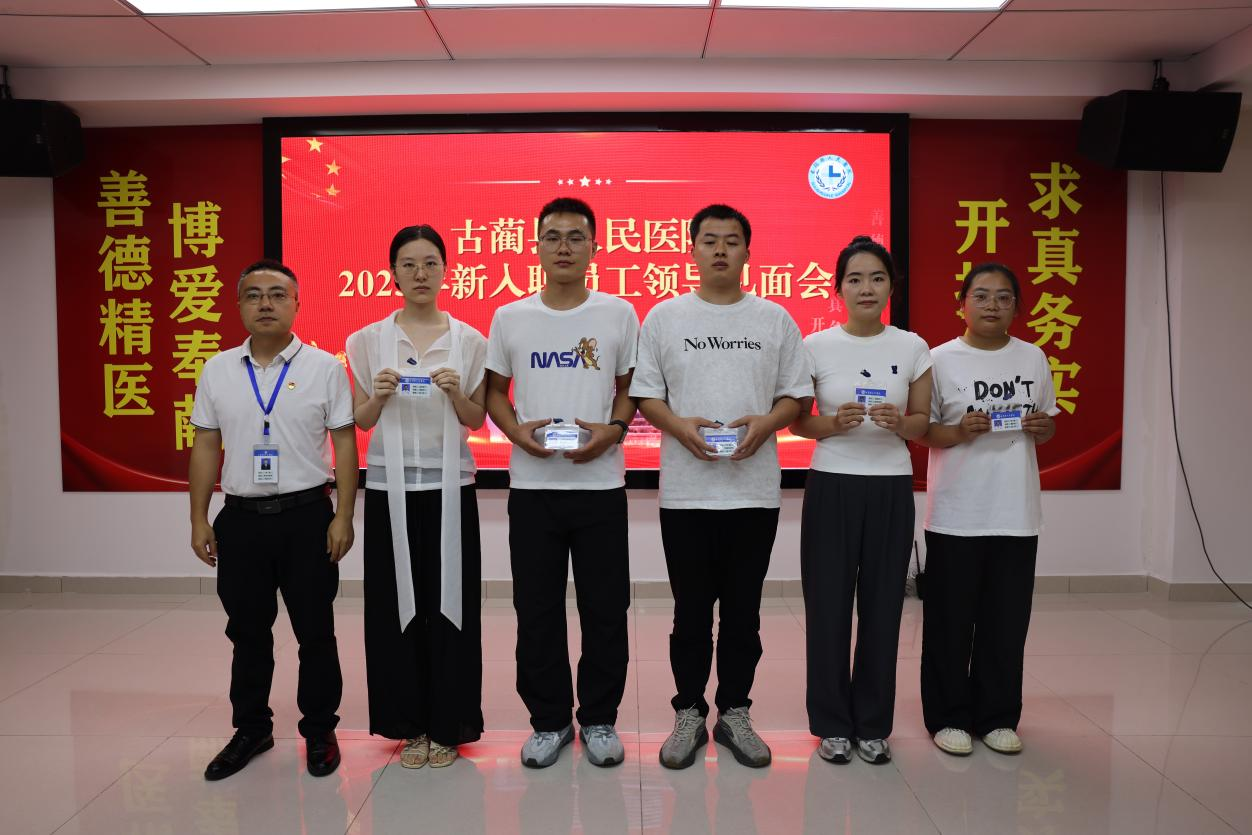 院领导依次为新入职员工授予医院工作牌,并发放“新生入职卡”与“蔺小医”文创品,既传递职业责任,也送上集体温暖。
