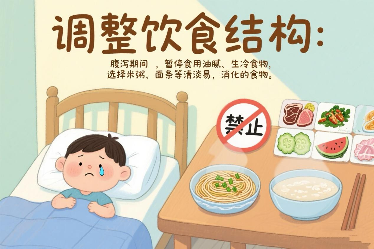 调整饮食结构:腹泻期间,暂停食用油腻、生冷食物,选择米粥、面条等清淡易消化的食物,减轻肠胃负担。