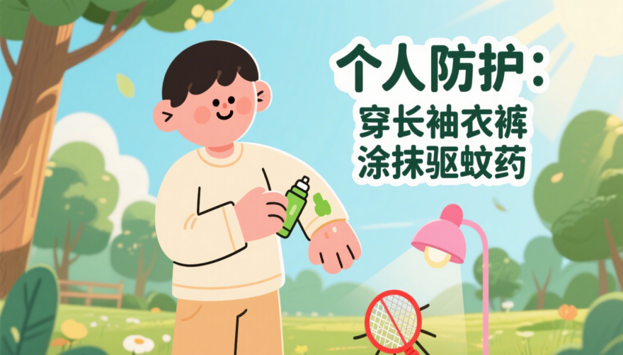 2.在户外蚊虫较多的区域活动时,尽量穿浅色长袖衣裤,同时涂抹驱蚊药物,避免长时间逗留。