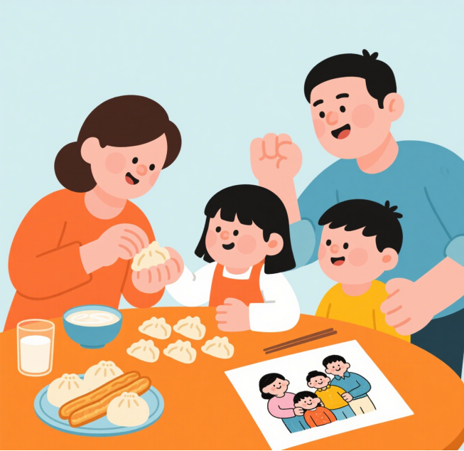 餐桌上多聊开心事,不批评孩子或聊压力话题,家长以享受食物的样子做示范,保持轻松氛围。