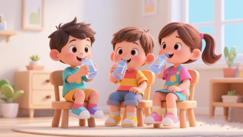 定时主动饮水:如体重约40公斤的孩子,建议每活动15-20分钟补充约150ml凉白开或电解质饮料(参照产品说明)。