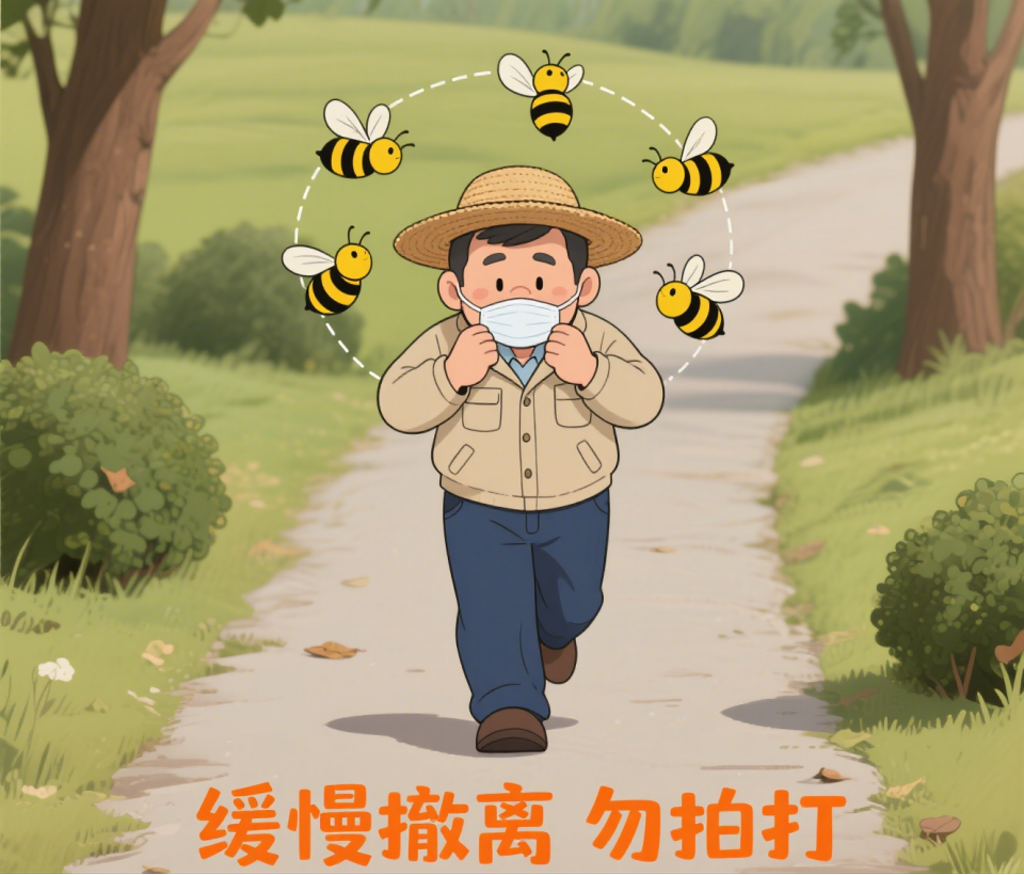 应保持镇定,缓慢沿原路后退,逐渐脱离蜂类活动范围。