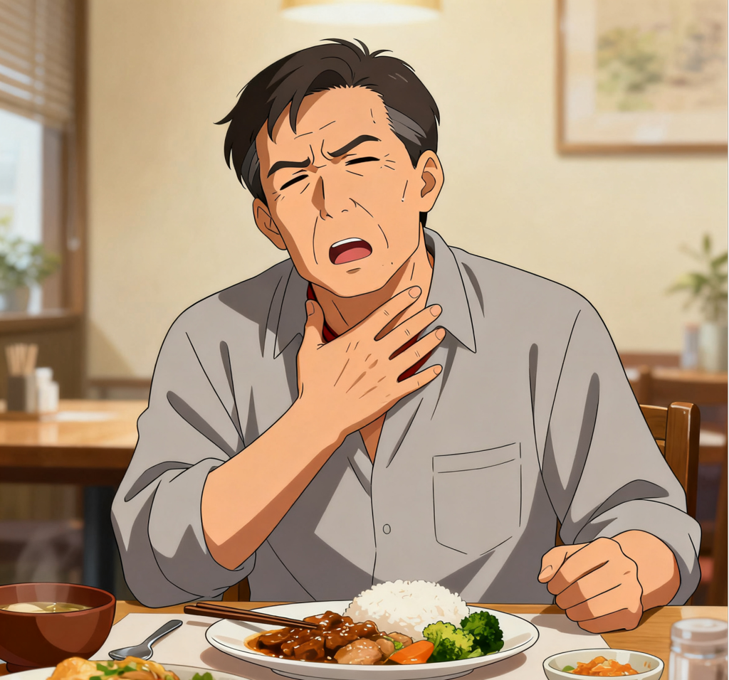 起初,他以为只是偶尔的不适。可很快,这种情况越来越频繁,也越来越严重——每一口饭都像在“闯关”。