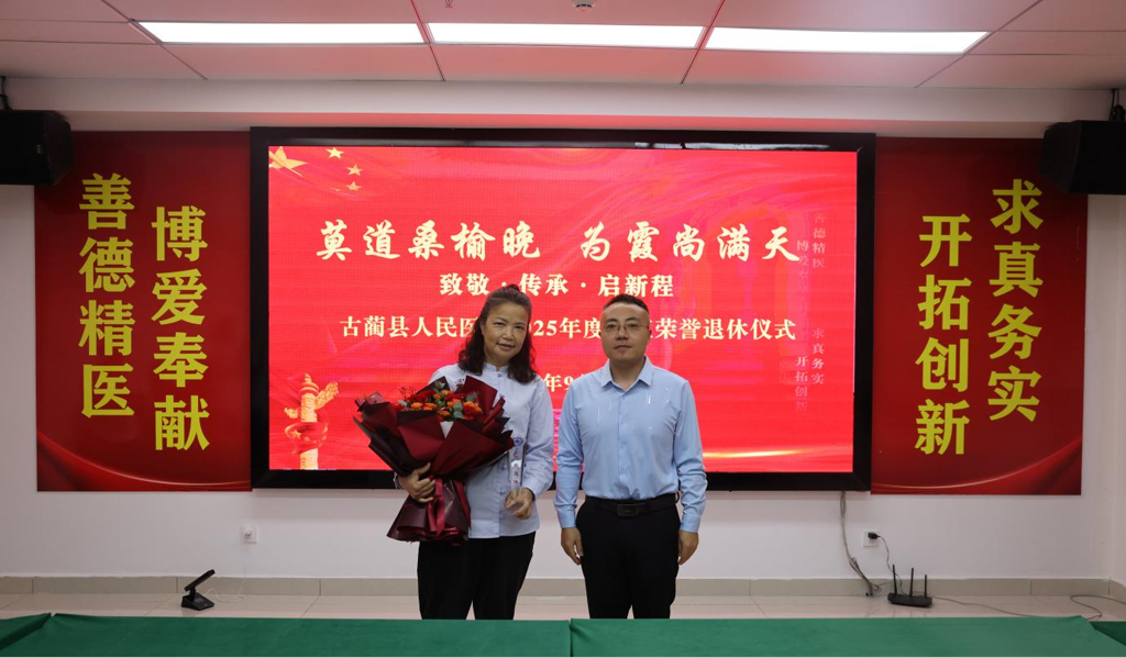 为弘扬医务工作者奉献精神,增强职工荣誉感与凝聚力,9月25日,古蔺县人民医院为2025年度退休职工举办荣誉退休仪式。院领导班子、相关科室负责人、退休职工及同事代表共同参与,仪式简洁庄重、温情洋溢。