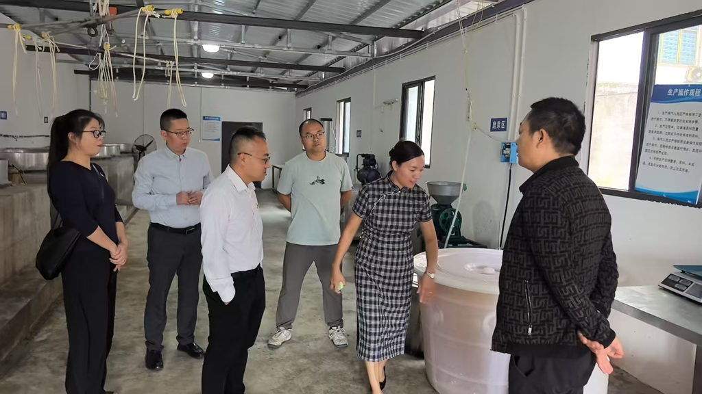 座谈会后,杨帆一行前往玉河村豆干厂实地考察。在厂区,调研团队详细了解了豆干的生产流程、质量管控、销售渠道拓展及村集体经济收益分配情况,结合市场需求与产业发展趋势,就推动豆干产业提质增效、打造特色品牌等方面提出指导建议。