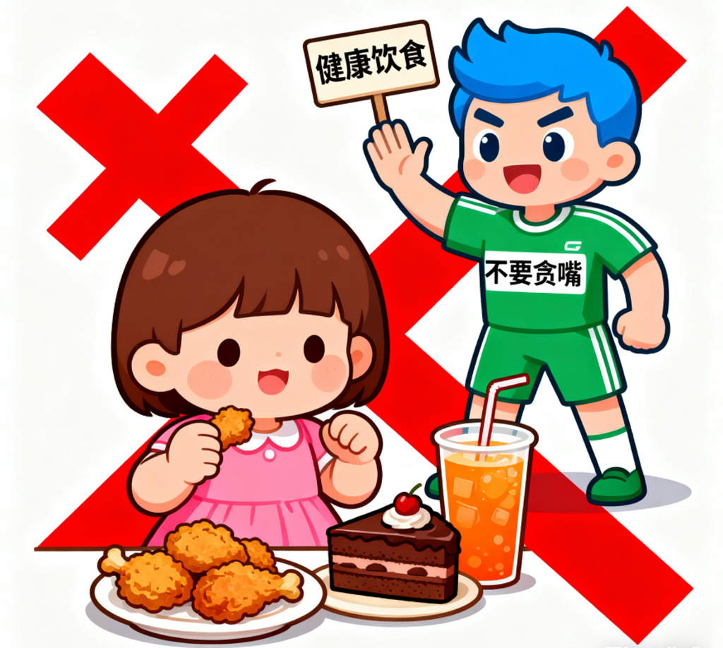 吃得聪明:限制油炸食物、甜点、含糖饮料,儿童每日脂肪摄入不宜超过总热量30%。