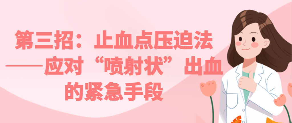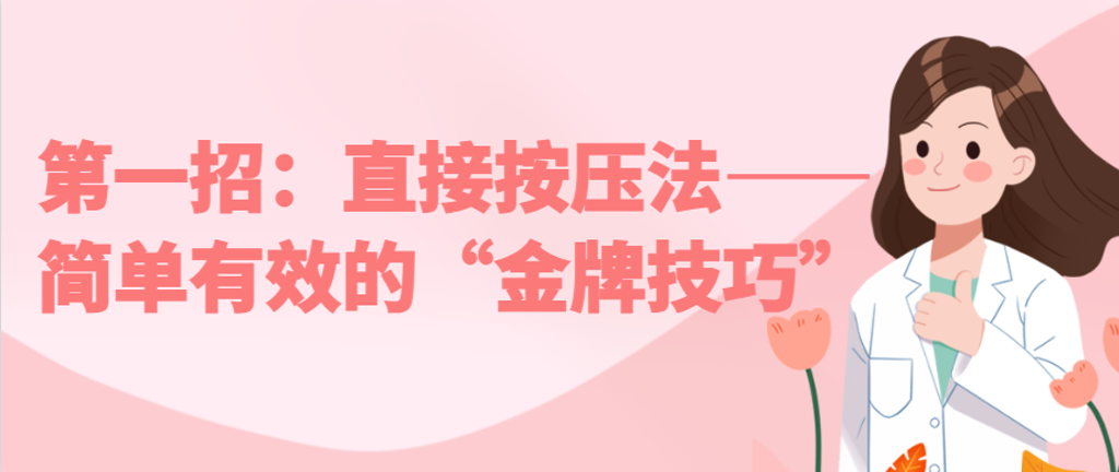操作要领:向骨骼方向用力按压,感到脉搏即可。出血应显著减少。