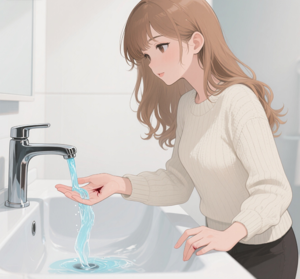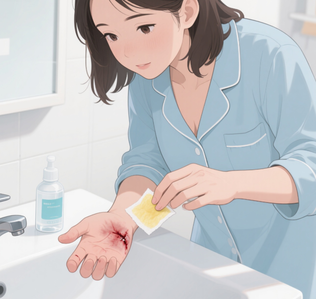 ✅ 正确做法:用生理盐水或流动清水冲洗,避免感染。