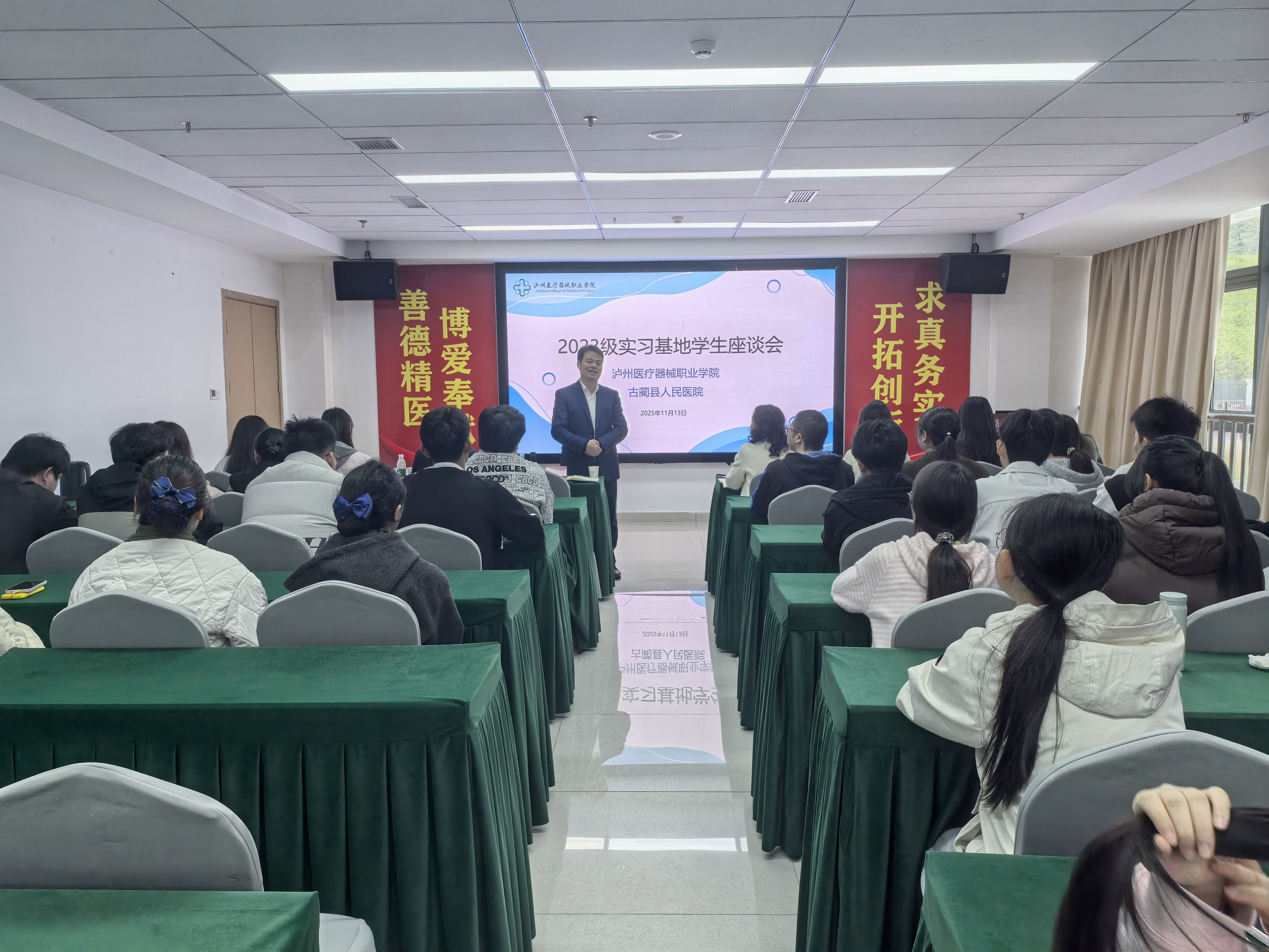 为深化院校合作内涵,精准对接医学人才培养需求,共同提升人才培养质量,11月13日,泸州医疗器械职业学院领导及教师团队一行到古蔺县人民医院开展访问交流,并召开实习生专题座谈会。古蔺县人民医院相关职能部门负责人、在院实习的泸州医疗器械职业学院学生共计40余人参会。会议由医院科研继教部主任颜卓主持。
