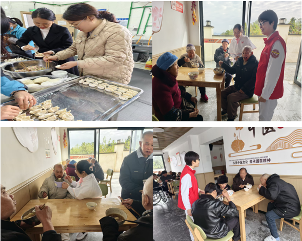 一场温馨的“饺子宴”,将整场活动的氛围推向高潮。平日里严谨细致的护士们系上围裙、洗净双手,与长者们围坐一桌。欢声笑语间,浓浓的暖意伴随饺子的香气在食堂内弥漫开来。一位爷爷动情地说道:“这些孩子真好,不仅给我们看病,还陪我们包饺子吃,就像自家的孙女一样!”