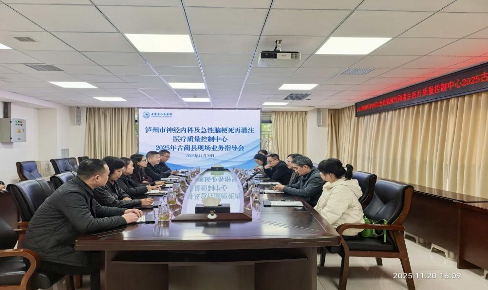 为切实提升泸州市神经内科医疗质量控制管理水平,推动神经内科疾病诊疗规范化进程,2025年11月20日,泸州市神经内科及急性脑梗死再灌注医疗质量控制中心组长陈秀率领专家组,到古蔺县人民医院开展2025年度现场业务指导。古蔺县人民医院院长助理刁玲、相关职能部门负责人及神经内科医务人员代表参加会议。