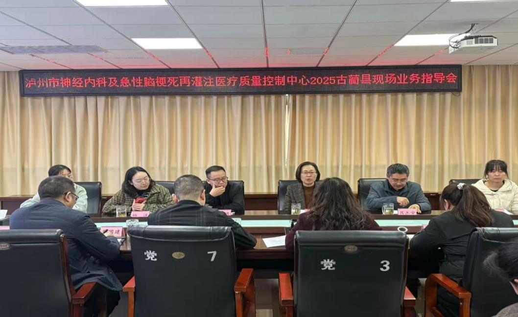 为切实提升泸州市神经内科医疗质量控制管理水平,推动神经内科疾病诊疗规范化进程,2025年11月20日,泸州市神经内科及急性脑梗死再灌注医疗质量控制中心组长陈秀率领专家组,到古蔺县人民医院开展2025年度现场业务指导。古蔺县人民医院院长助理刁玲、相关职能部门负责人及神经内科医务人员代表参加会议。