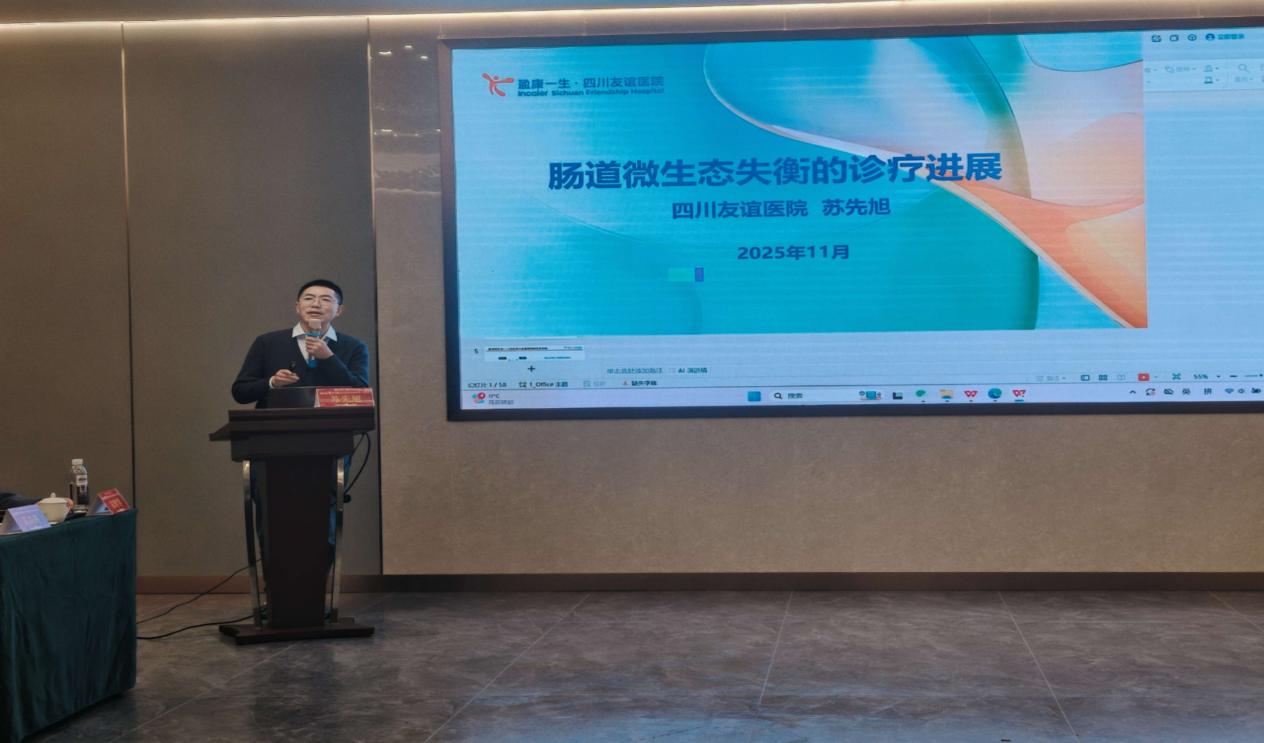 四川友谊医院苏先旭教授在《肠道微生态失衡的诊疗进展》报告中,系统解析了微生态失衡与肿瘤发生发展的关联机制,并展示了益生菌、粪菌移植等新型治疗方法的临床应用成效。