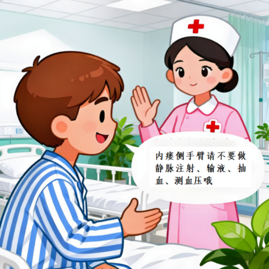· 量血压、抽血、打针输液,都要提醒医护人员:“这边手臂是做瘘的,不能用”