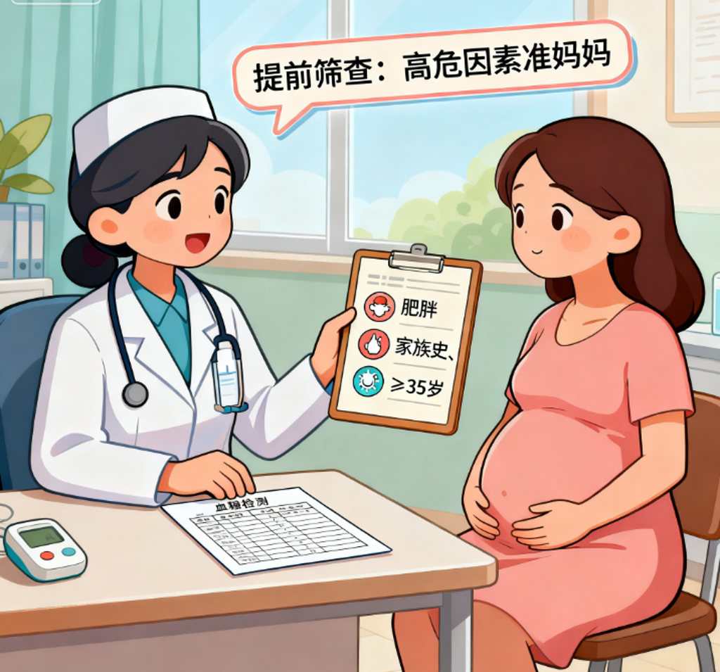 ✅ 如果你属于高危人群(比如比较胖、家有糖尿病史、以前生过巨大儿、年龄≥35岁、有多囊卵巢综合征等),医生可能建议你提前就查。