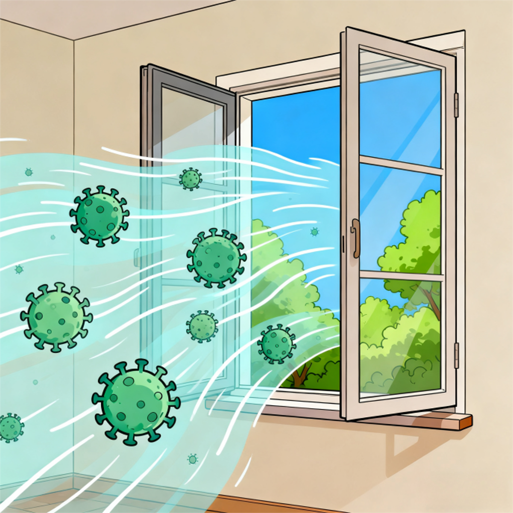 2. 每天勤通风:每天至少开窗通风2次,每次30分钟以上;