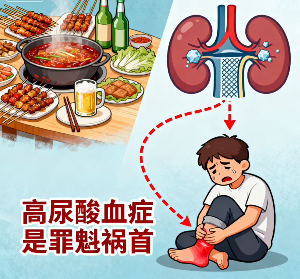 尿酸是我们身体代谢出来的东西,你要是海鲜、内脏吃多了,啤酒喝个不停,尿酸就噌噌往上涨;要么就是肾脏“偷懒”,尿酸排不出去。