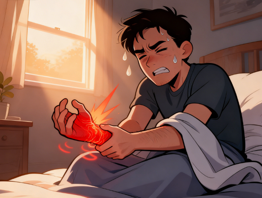 经常是半夜或大清早突然痛醒,号称“痛中之王”,像刀在割、狗在咬,被子轻轻搭在身上都痛得你惊叫唤!