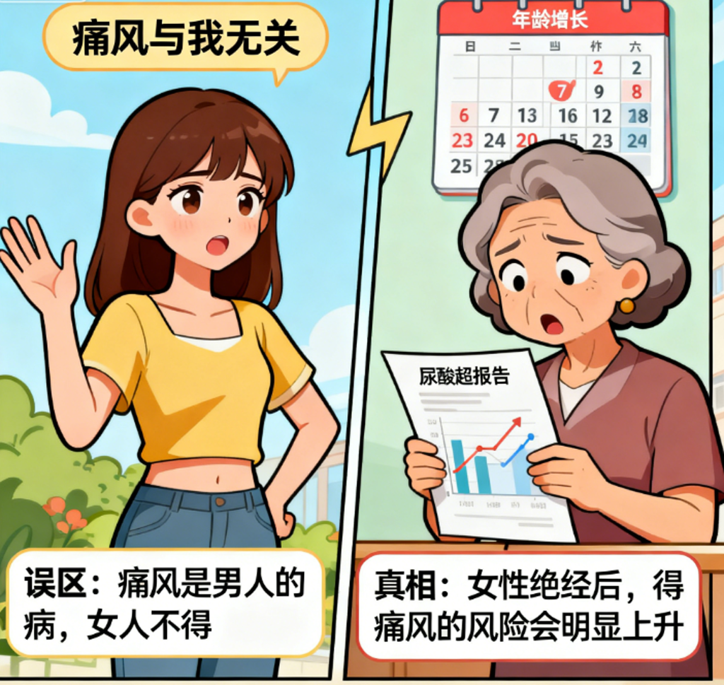 误区3:痛风是男人的病,女的不得遭。