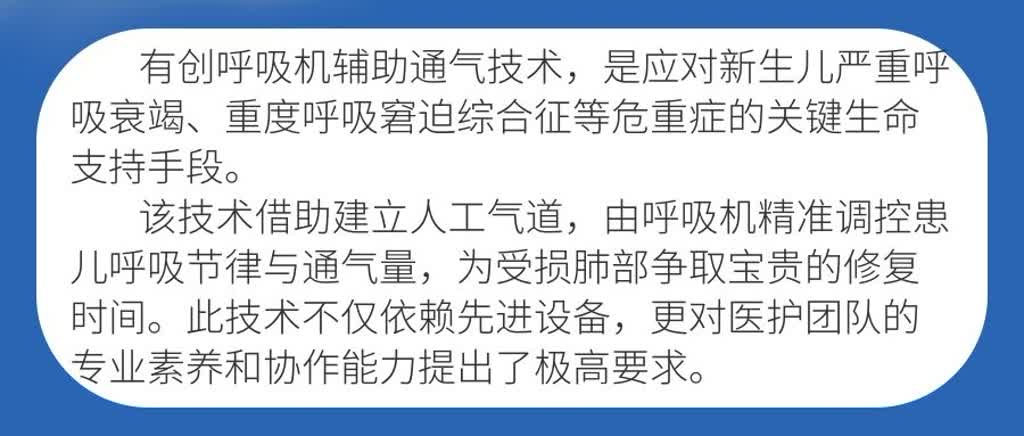 此次有创辅助通气技术的成功应用,不仅为早产低出生体重合并严重呼吸衰竭患儿提供了有效的救治方案,更填补了县域新生儿危重症呼吸支持技术的空白,显著提升了区域内极危重新生儿的综合救治能力,为保障新生儿呼吸健康筑牢了坚实防线。