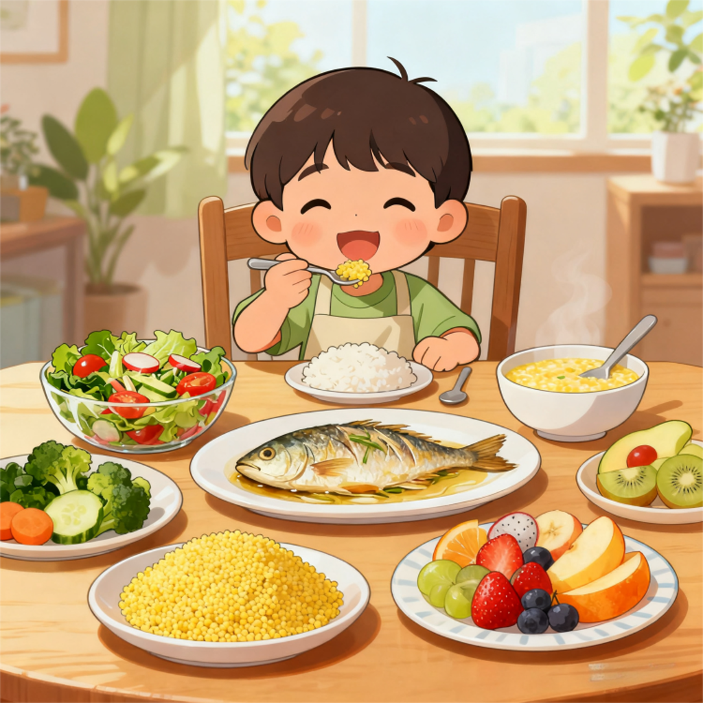 5.饮食要跟上:多给娃儿吃些有营养、好消化、维生素多的食物。
