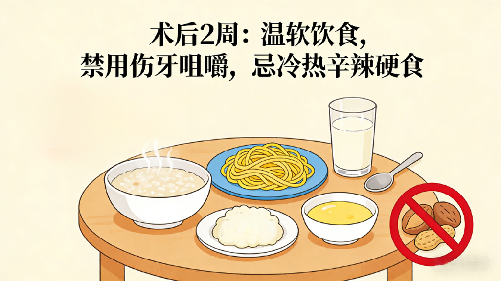 · 受伤后2周内只吃温和软和的食物,比如粥、烂面条、酸奶、蒸蛋。