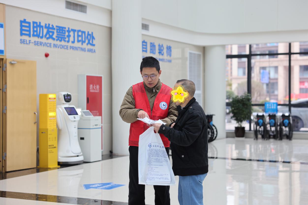 在门诊大厅、自助服务机旁、各楼层分诊台等关键服务点位,身着志愿马甲的行政工作人员化身暖心“引导员”“帮扶员”“疏导员”,全程坚守岗位、主动靠前服务。他们细致解答患者关于就诊流程、科室分布、医保报销等各类咨询,手把手协助老年人、残疾人等特殊群体完成自助挂号、缴费、报告单打印等操作,主动搀扶行动不便的患者就诊、检查、取药,有序疏导就诊人流、缓解候诊焦虑,用贴心、耐心、细心的服务,打通便民惠民就医“最后一公里”。